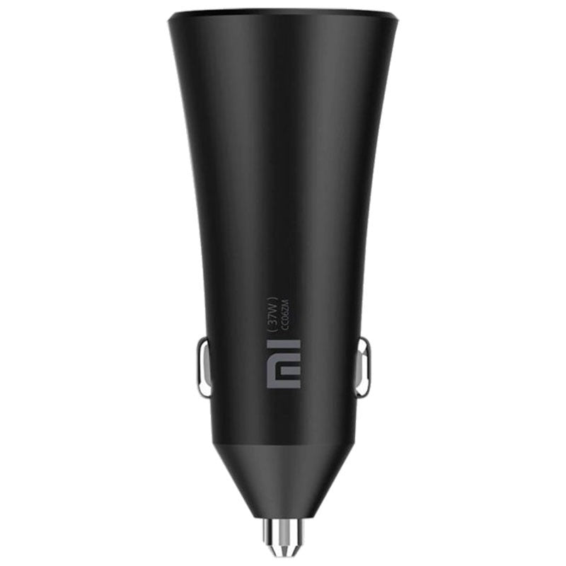 Cargador para auto con doble puerto que permite cargar dos dispositivos a la vez con hasta 37 W de potencia combinada, compacto, seguro y compatible con smartphones y tablets.